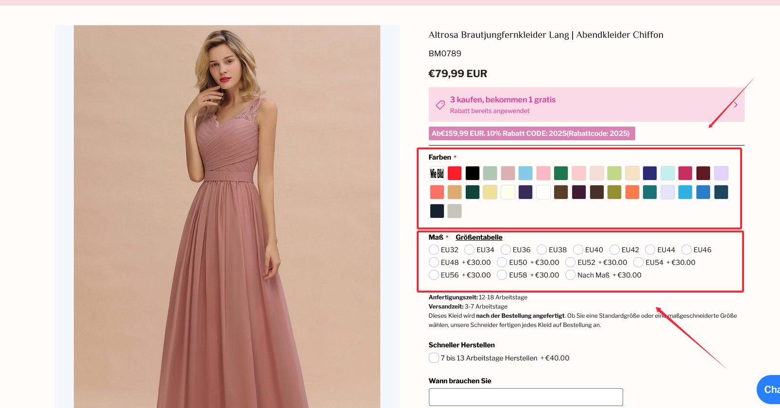 1. Wählen Sie die Artikel, die Ihnen gefallen, und wählen Sie eine Farbe, Größe und Menge aus, die Sie kaufen möchten.