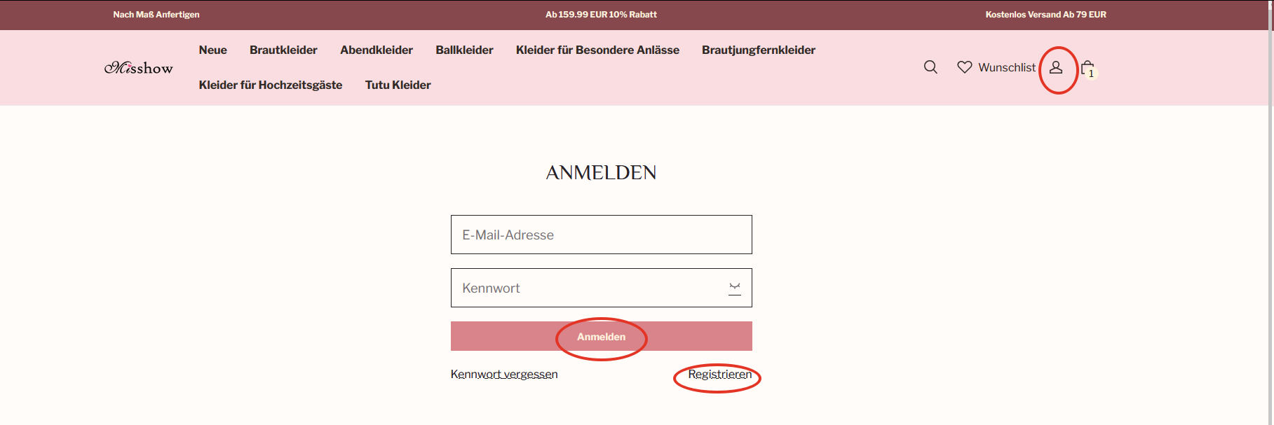 Melden Sie sich bei Ihrem Misshow.de-Konto an:Einlogen/Neue Anmelden Sie sich mit Ihrer E-Mail oder einer Drittanbieter-Plattform.